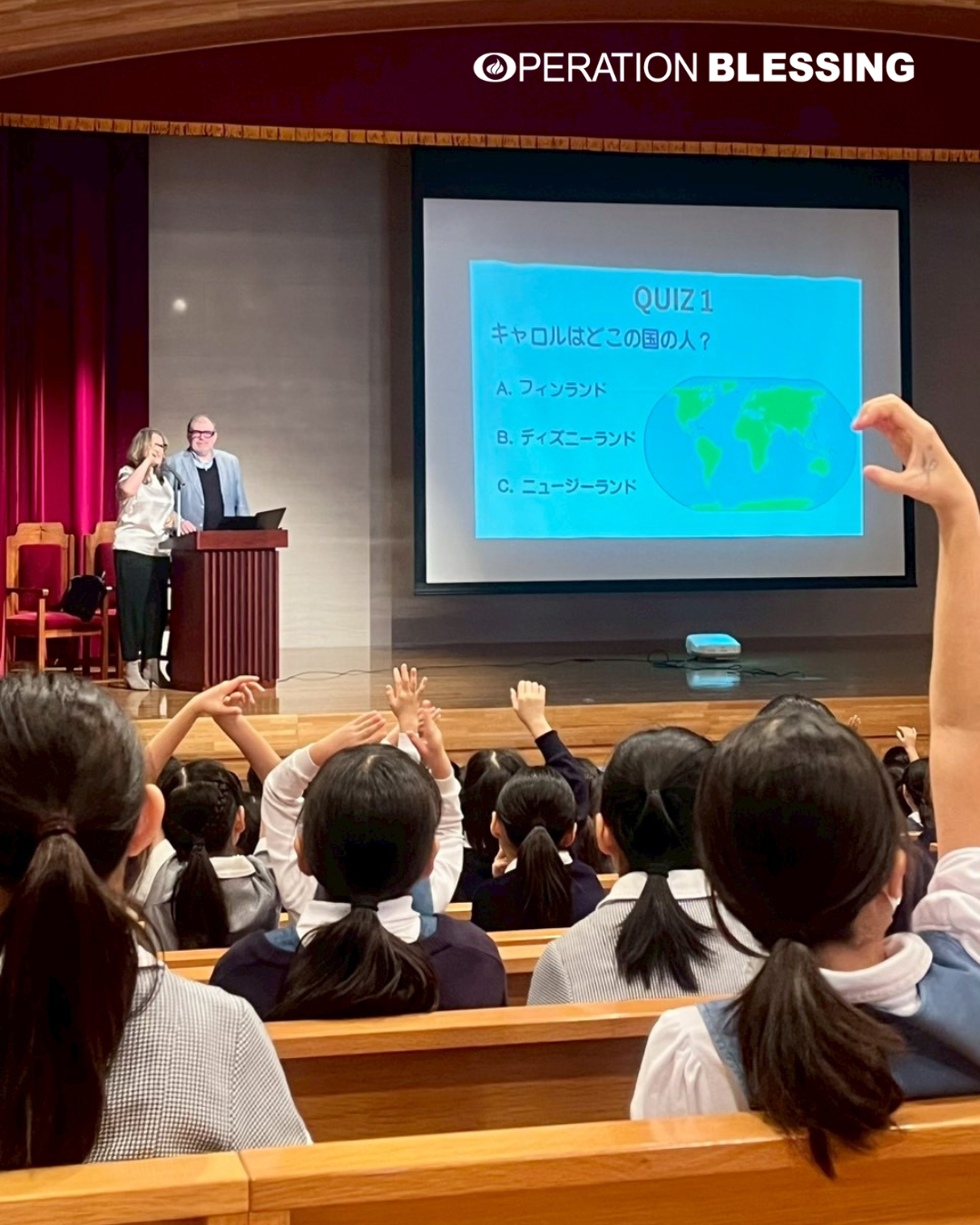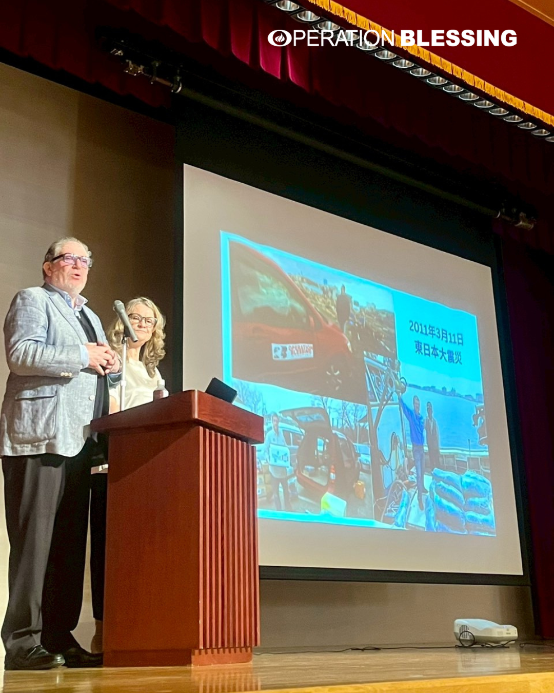 代表のドナルド・トムソンがOBJの活動やクリスマスギビングについて紹介しました。